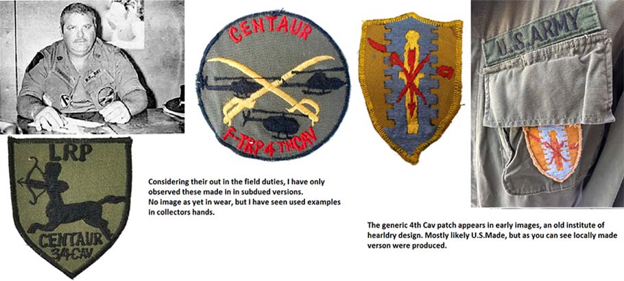 Patches from Sandy McLeod: I was a Centaur (Centaur 46) from July, 1970 to June, 1971. I believe I wore the D Trp ¾ Cav patches during my entire tour since I don’t recall changing out my patches when we were redesignated as F Troop, 4th Cavalry, 1st Aviation Brigade o/a February, 1971. Â